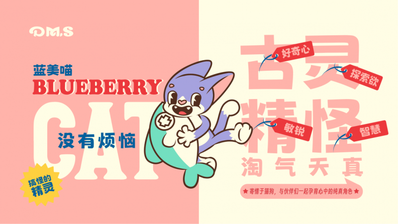 “蓝美喵”以“猫中精灵”德文卷毛猫为原型,它们敏锐、智慧、淘气天真,充满好奇心和探索欲,像“搞怪的精灵”一般,驱散成人生活中的无聊和烦恼,为无数个平淡的日常增添一抹温暖和亮色。“蓝美喵”主体采用了大玛仕产品成分中蓝莓的蓝紫色,紫色的梦幻感增加了童话色彩和识别性,大而明亮的眼睛,彰显大玛仕猫粮中蓝莓护眼明眸的功能性特点。这些细节和巧思,以有血有肉的情绪肌理和可触碰的梦想轨迹,与大众展开双向奔赴的温暖对话。