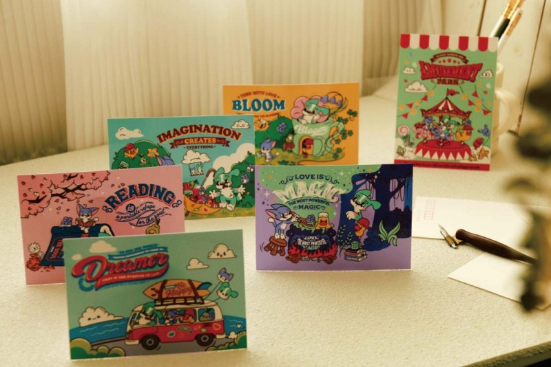 品牌IP不仅是品牌形象的塑造,更是品牌与消费者之间情感连接、品牌价值提升和市场竞争力增强的关键。有了鲜明的IP形象,大玛仕并没有止步于此,而是通过一系列周边营销活动,让“鸭梨狗”和“蓝美喵”的形象更加生动、立体,从充满童话色彩的明信片,到IP元素的可爱便携圆扇,再到设计感拉满的定制款编织袋、治愈系的毛绒玩具等,大玛仕用实际行动诠释了“周边营销+品牌自有IP”的无限可能。
