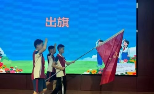 仪式在庄严的《出旗曲》中启幕。三名旗手步履铿锵,护卫队旗缓缓入场,全体师生肃立凝视。老队员们敬起标准队礼,新同学们亦以挺拔站姿,传递着对少先队组织的崇敬。“我们是共产主义接班人,继承革命先辈的光荣传统……”激昂的队歌响彻校园,香樟掩映的校园里,歌声裹挟着少年们的自豪与向往,为秋日增添了滚烫朝气,更让“敦本”向学、向上的精神在旋律中流淌。