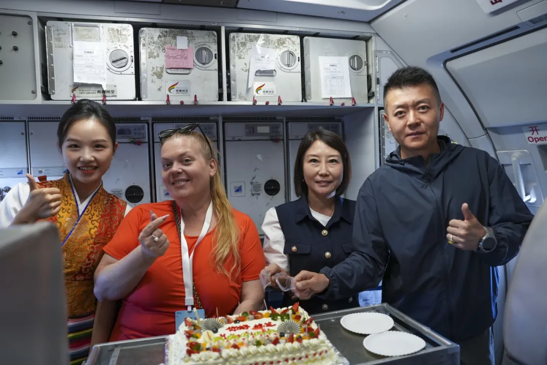 9 月 27 日,“林芝文旅号” 首航暨入境商交流推广活动欢迎仪式在林芝米林机场启动。林芝市人民政府、市文化和旅游局、米林机场及西藏航空相关领导出席仪式。“林芝文旅号”主题航班由林芝市文旅局联合西藏航空冠名打造,融合林芝旅游资源、非遗元素创意设计,它不仅是运输工具,更是林芝文旅“空中名片”。当日 8 时 30 分,旅行商乘“”林芝文旅号”主题航班从成都起飞,通过“听・天籁林芝、学・藏语课堂、品・味道林芝”环节感受沉浸式云端体验;10 时 30 分抵达后,领导为嘉宾敬献哈达,欢迎仪式上的牦牛舞表演更让旅行商近距离感受高原文化魅力。林芝市人民政府副秘书长旦巴多吉在欢迎词中表示,希望以此次活动为契机,借助旅行商纽带作用,将林芝风光与文化推向国际市场。
