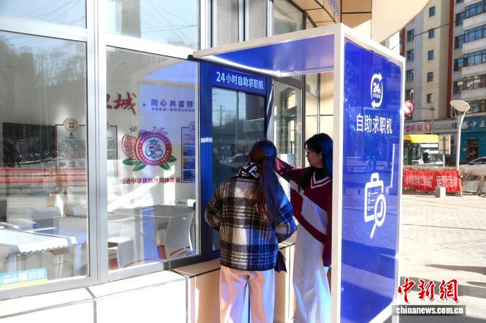 市民在数智零工驿站的24小时自助求职机上寻找就业岗位。张忠苹摄