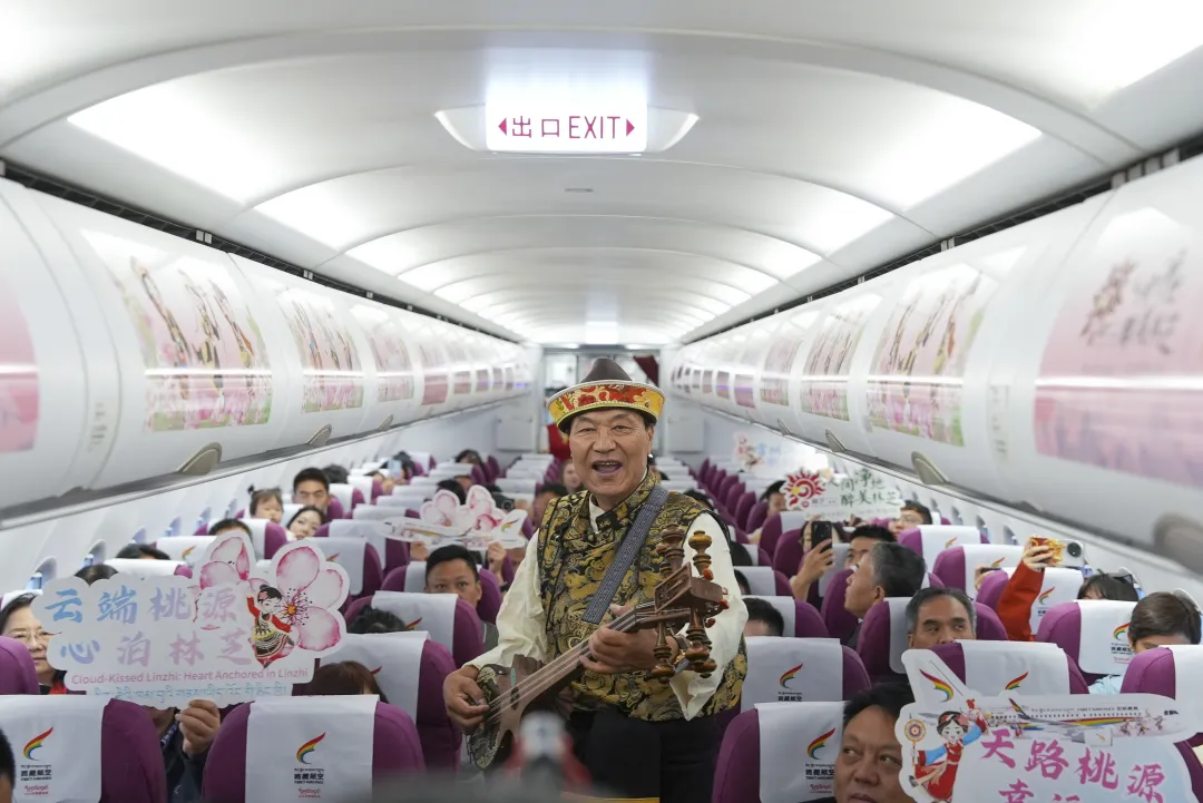 9 月 27 日,“林芝文旅号” 首航暨入境商交流推广活动欢迎仪式在林芝米林机场启动。林芝市人民政府、市文化和旅游局、米林机场及西藏航空相关领导出席仪式。“林芝文旅号”主题航班由林芝市文旅局联合西藏航空冠名打造,融合林芝旅游资源、非遗元素创意设计,它不仅是运输工具,更是林芝文旅“空中名片”。当日 8 时 30 分,旅行商乘“”林芝文旅号”主题航班从成都起飞,通过“听・天籁林芝、学・藏语课堂、品・味道林芝”环节感受沉浸式云端体验;10 时 30 分抵达后,领导为嘉宾敬献哈达,欢迎仪式上的牦牛舞表演更让旅行商近距离感受高原文化魅力。林芝市人民政府副秘书长旦巴多吉在欢迎词中表示,希望以此次活动为契机,借助旅行商纽带作用,将林芝风光与文化推向国际市场。