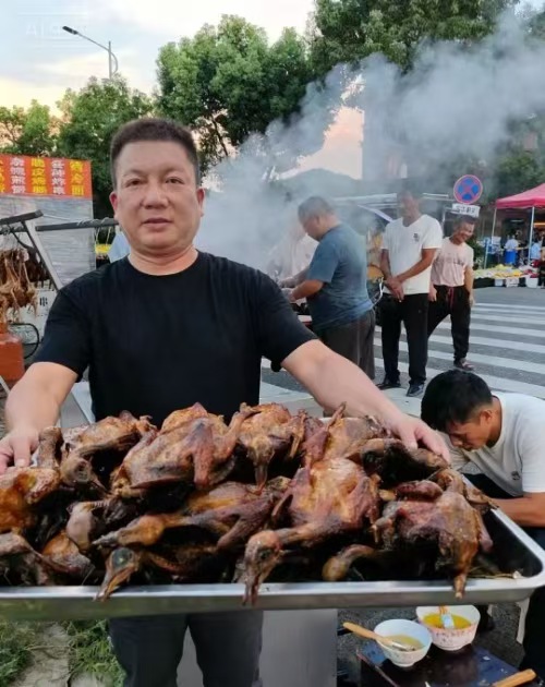 这香飘夜市的乳鸽,源于高门村一次积极的产业探索。今年6月,实习村支书叶松峰在走访中注意到,养殖户老余通过散养肉鸽,一年能增收两万余元,但单纯的批发销售附加值不高。为此,他联合养殖大户叶枝华、水电工叶华忠组建创业三人组,开始尝试乳鸽深加工。他们反复调试卤制配方,尝试用松针垫底增添风味,精准把控烤制温度……经过数十次试验,终于研制出独具风味的烤乳鸽工艺。