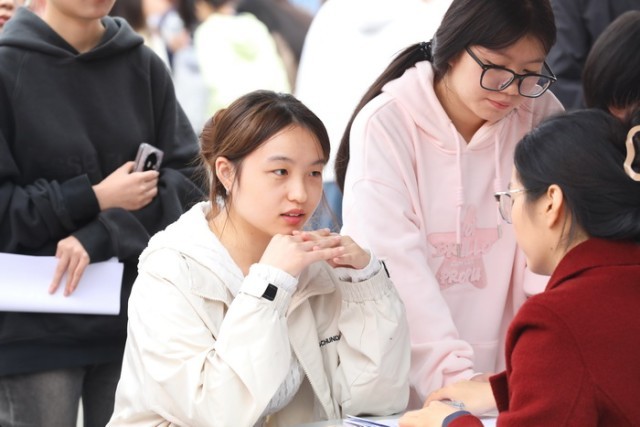 在闽江学院主办的2025届毕业生就业招聘会上,职业形象辅导等暖心举措让大学生享受便捷高效的就业指导服务。谢贵明摄/光明图片